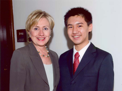 Tao with Hillary Clinton on September 24, 2008 after he was named a Davidson Fellow Laureate (photo from the Davidson Institute for Talent Development)