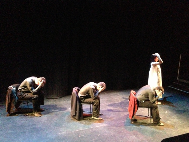 Arif Mirabdolbaghi, Adam Paolozza and Viktor Lukawski in Paolozza’s adapation of Dostoyevsky’s “The Double” (photo by Lacey Creighton)
