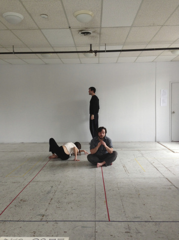Rehearsal for Paolozza’s “Shostakovitch, or 3 Days in Red,” which was performed at the 2013 Rhubarb Festival in Toronto (photo by Adam Paolozza)