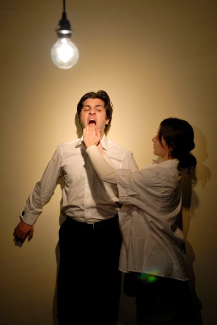Viktor Lukawski and Paolozza in Paolozza’s adapation of Dostoyevsky’s novella “The Double” (photo by Lacey Creighton)