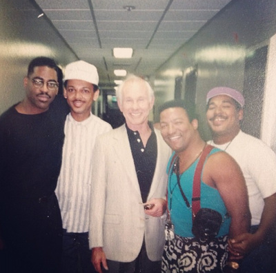 Barbarin (extreme right) in the recording studio with Arthur Latin, Leroy Jones, Harry Connick, Jr. and Neal Caine (photo courtesy of Lucien Barbarin)