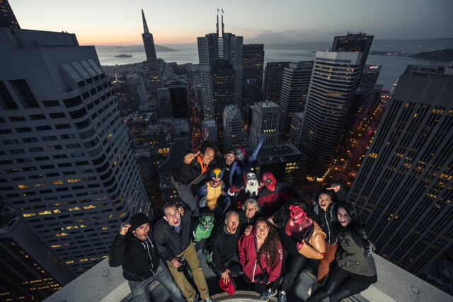 Benjamin Von Wong and collaborators in his “Superheroes on Skyscrapers” shoot in San Francisco (photo courtesy of Benjamin Von Wong)