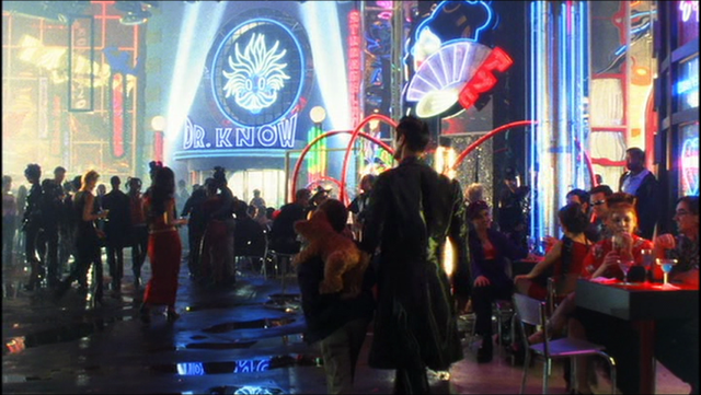 A still from Steven Spielberg’s 2001 film “A.I. Artificial Intelligence” featuring a neon environment created by Lisa Schulte (photo courtesy of Lisa Schulte)