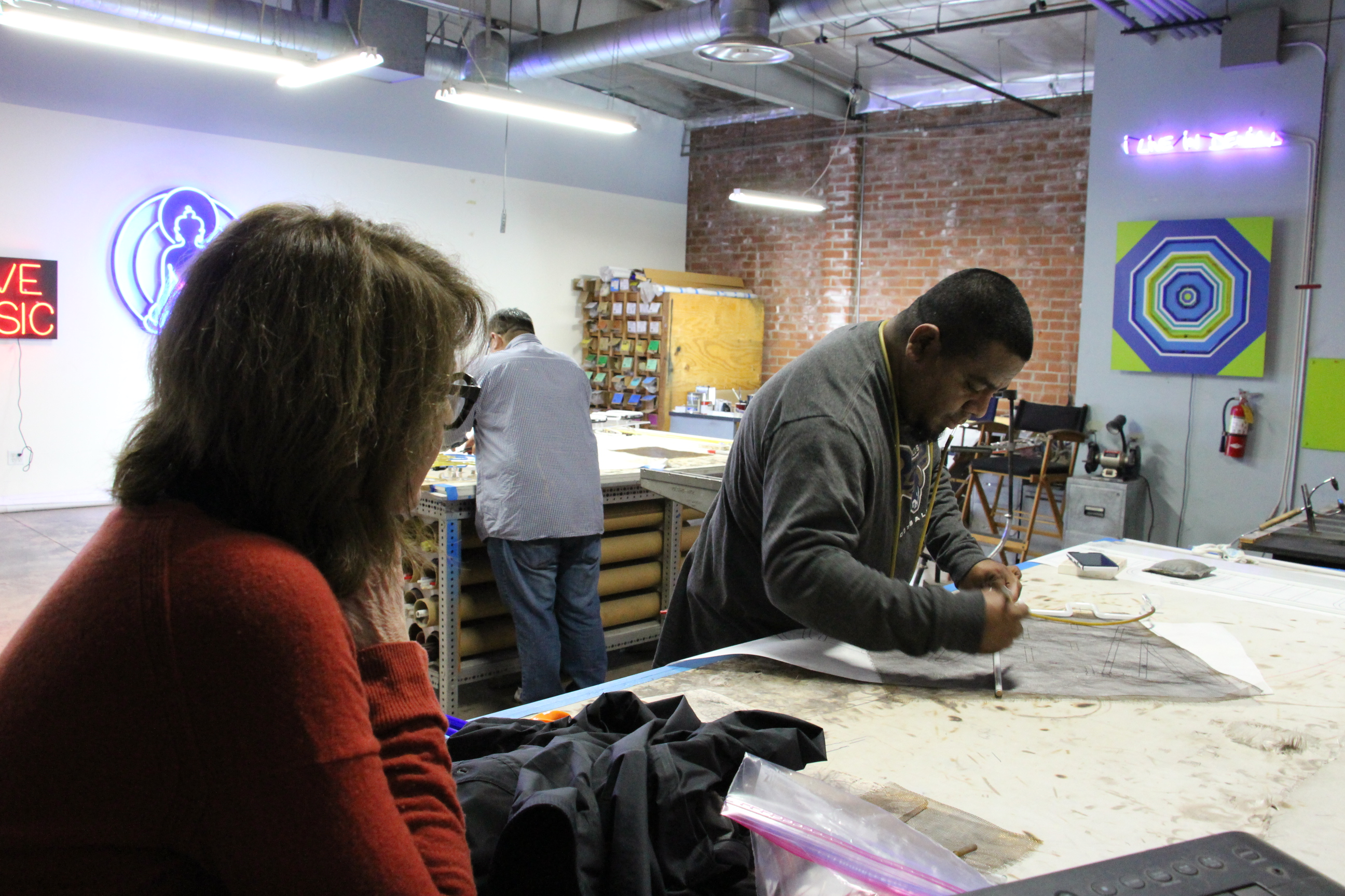 I think the combination with three-dimensional neon was challenging, because three-dimensional neon bending is not done with a paper pattern. You are bending to the wood, which is a whole different concept. I felt the marriage was beautiful.