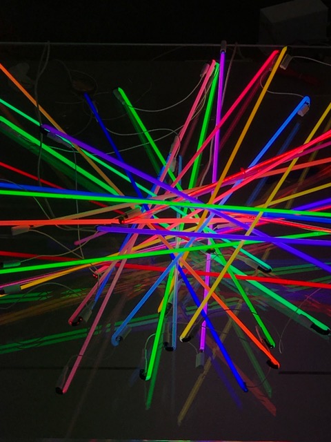 And then I took a bunch of shapes and I started throwing shape on top of shape on top of shape, and lit it up. Then I took 30 pieces of straight lines of neon I had just made – like a pick-up stick pile, just random. I didn’t care about color, I didn’t care if it was six feet or eight feet. I created five sculptures in one day. The anger had disappeared from my body and I felt like, “That was really organic.”