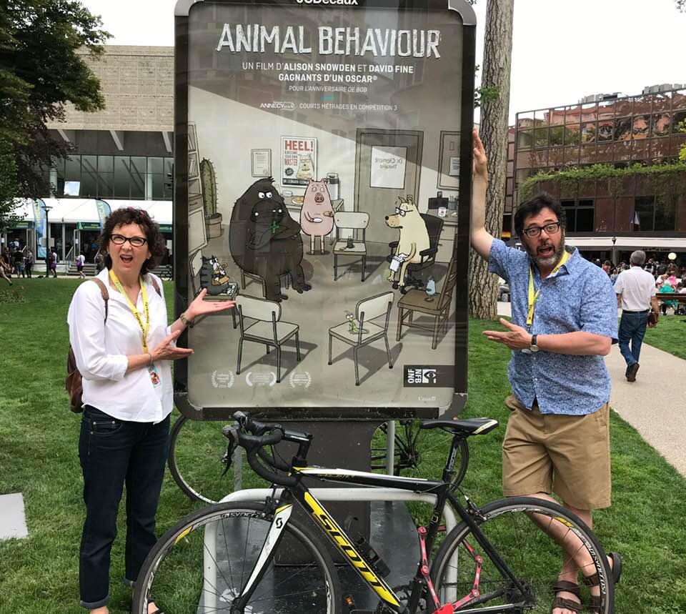 Snowden and Fine at the 2018 Annecy International Animated Film Festival premiering “Animal Behaviour” (photo courtesy of the National Film Board of Canada)