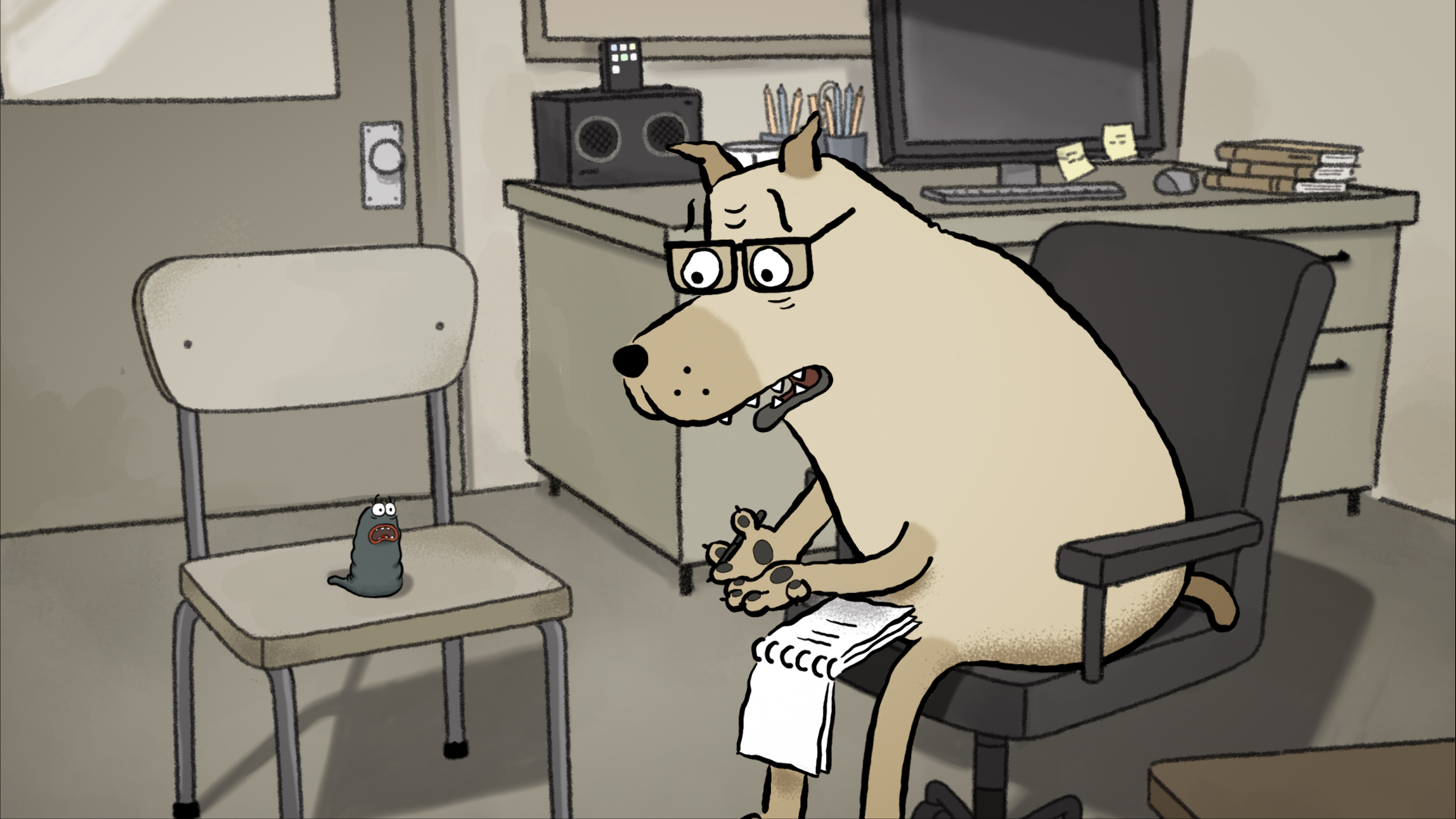 The film, produced and distributed by the National Film Board of Canada, is a humorous look at what happens when a new animal joins a canine-led therapy session for five animals (a leech, praying mantis, pig, cat and bird), who are struggling with their natural instincts.