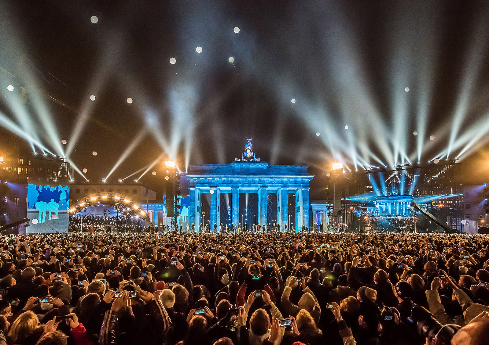 LICHTGRENZE, a citywide art installation created in 2014 by Christopher Bauder and his brother Marc Bauder to celebrate the 25th anniversary of the Berlin Wall (photo by Ralph Larmann)