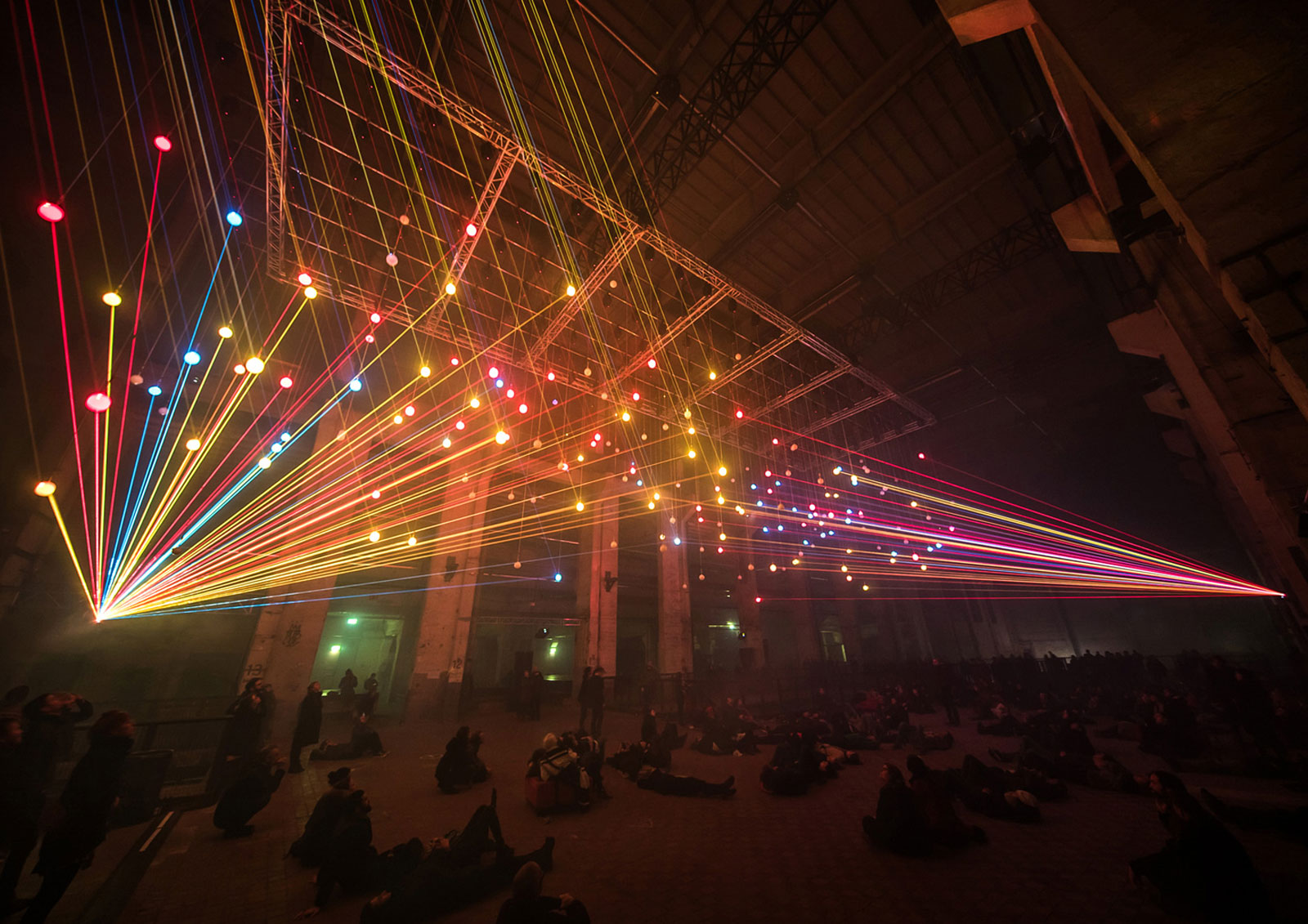 CB: I like industrial spaces. I don’t like traditional museum spaces – white cubes or black boxes – because they’re just a neutral shell. I like to work with the space because my installations are spatial. You can experience them from 360 degrees. And I like this interplay between the old industrial space and the modern light installation inside.