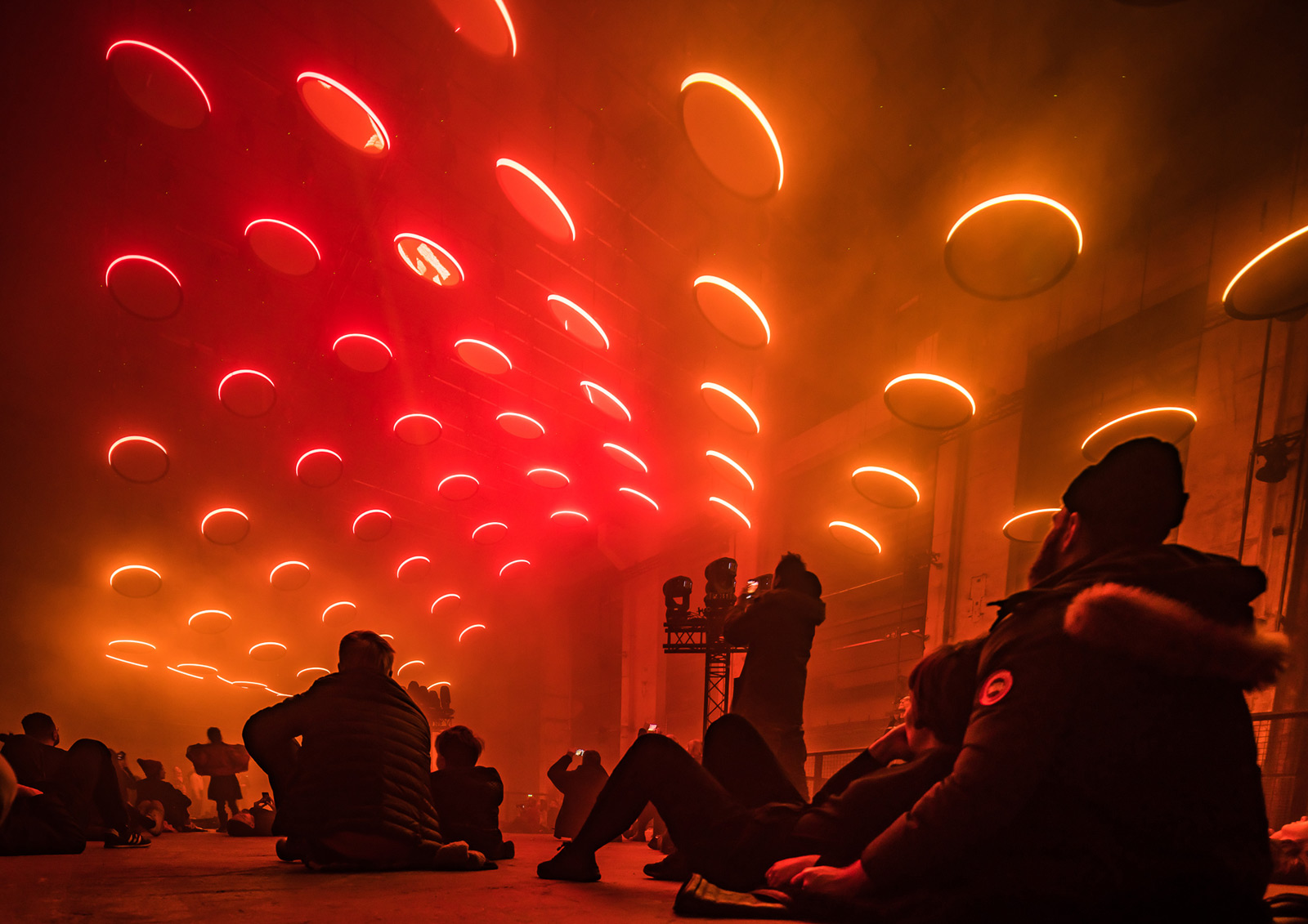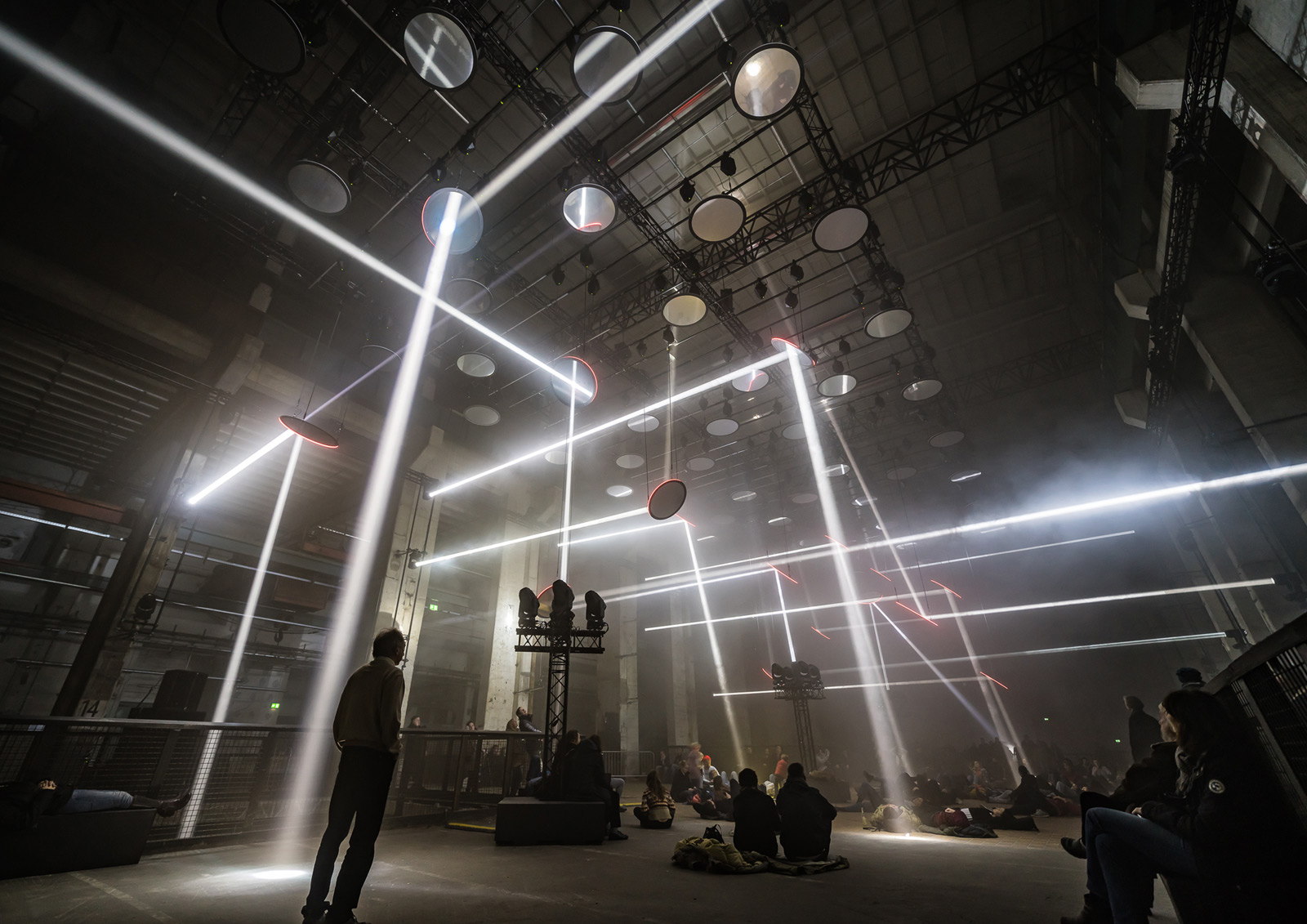 SKALAR, by Christopher Bauder and Kangding Ray, at Kraftwerk Berlin in 2018 (photo by Ralph Larmann)