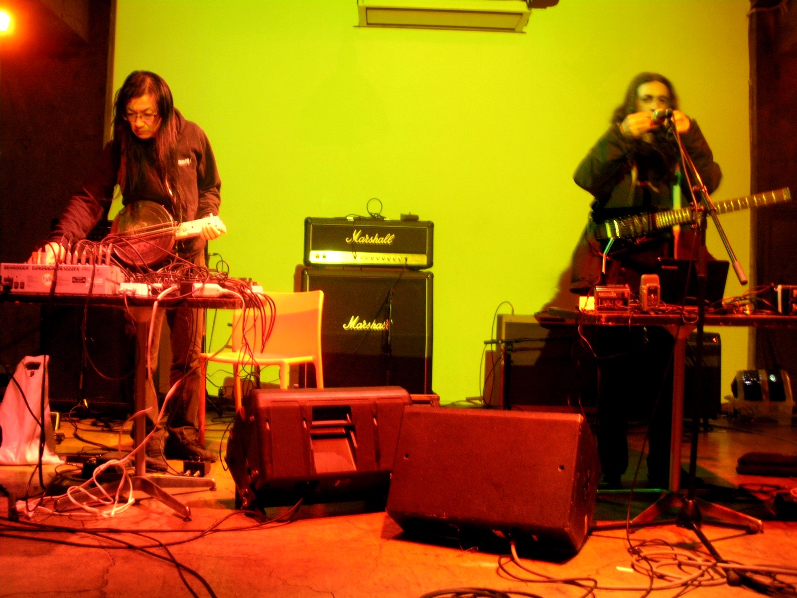 Japanese noise artist Merzbow (L) and Alan Courtis collaborating in 2014 (photo courtesy of Alan Courtis)