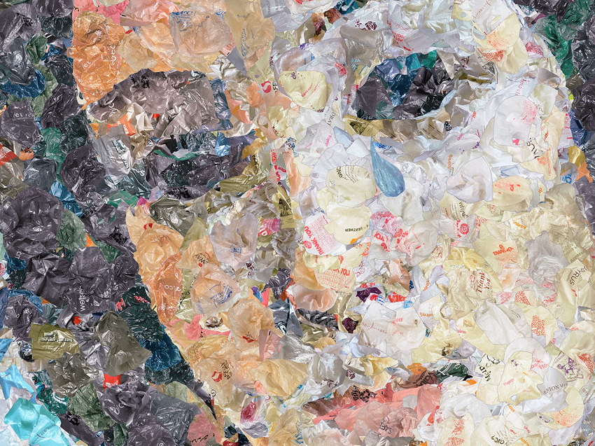 A detail from Chris Jordan’s “Venus,” showing a closer view of the plastic bags that make up the photograph