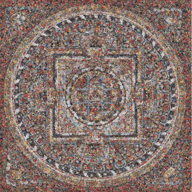 CJ: Each one is a technical problem that I have to solve. The first few that I made, the images were all rectangular and so I worked with lots of photographs of soda cans and I built the Seurat painting out of soda cans. That one was easy because I was able to use photo mosaic software. But then I started thinking, “How can I get out of the photo mosaic concept and have non-rectangular shapes overlapping each other.”