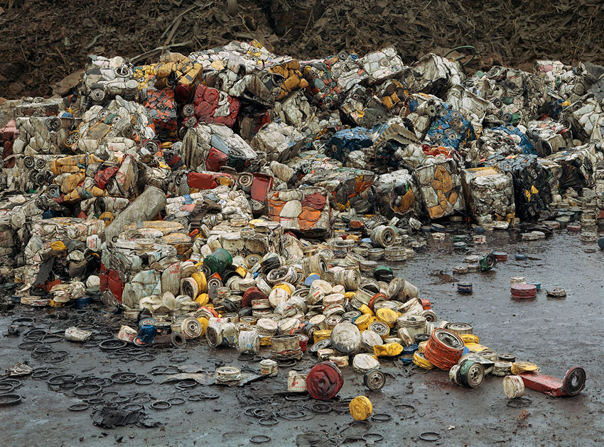 Several of his photo series document mass consumption and consumerism, including Intolerable Beauty (2003-2005), which draws attention to industrial waste in America’s shipping ports and industrial yards, and Running the Numbers, two series of photographic mosaics that cleverly transform sobering statistics into visual representations.