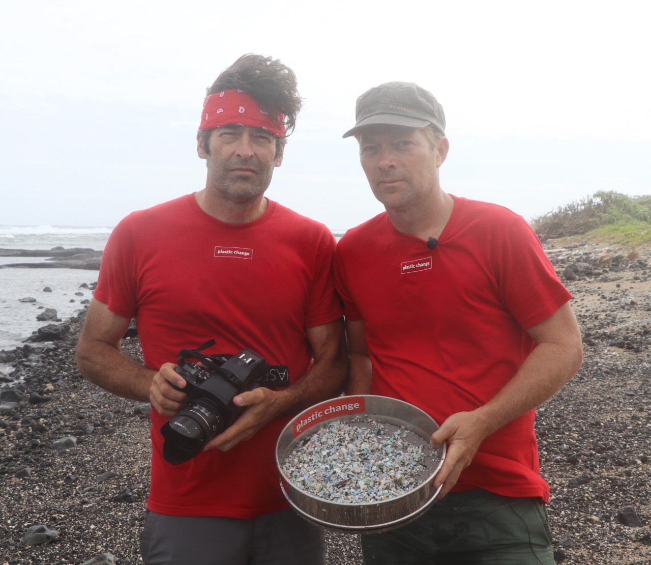 Chris Jordan with marine biologist Henrik Beha Pedersen, founder of the environment organization Plastic Change, at Kamilo Beach, Hawaii in 2016 (photo courtesy of Chris Jordan)