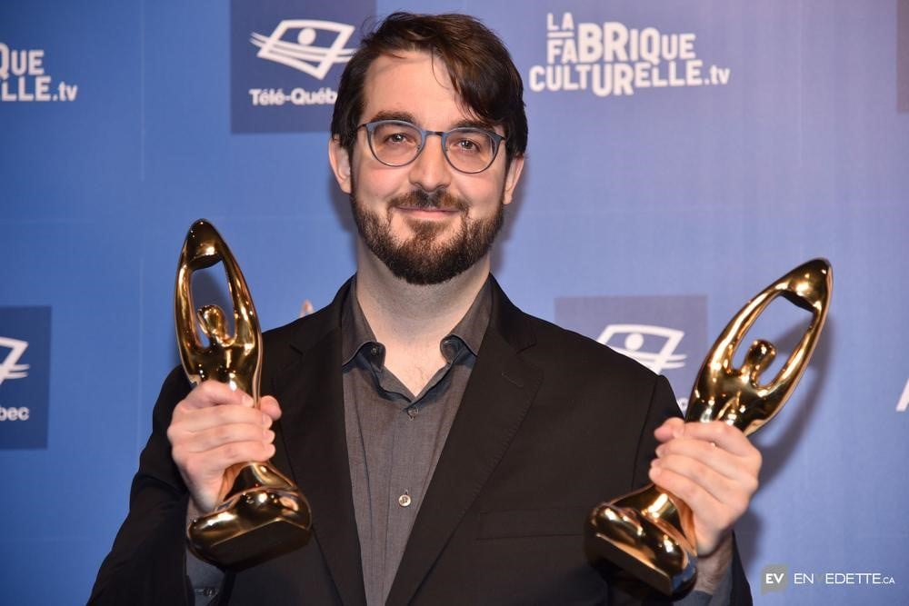 Richard-Hamelin in 2019 holding 2 Félix awards he won that year (photo courtesy of Charles Richard-Hamelin)